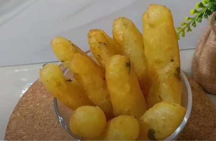 3. Setelah matang, keluarkan dan dinginkan, kemudian iris-iris seukuran jari.
