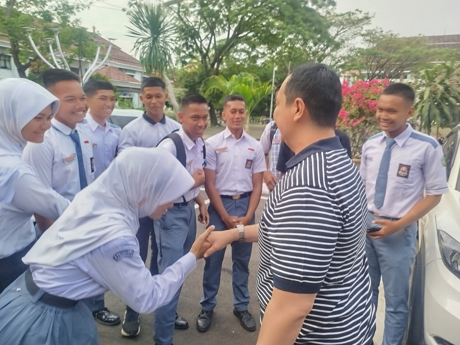 Namun, belum sempat memasuki kendaraannya, Budi Rustandi justeru berbalik arah untuk menuju kerumunan para pelajar yang baru saja selesai latihan baris-berbaris ditengah lapangan Puspemkot Serang.