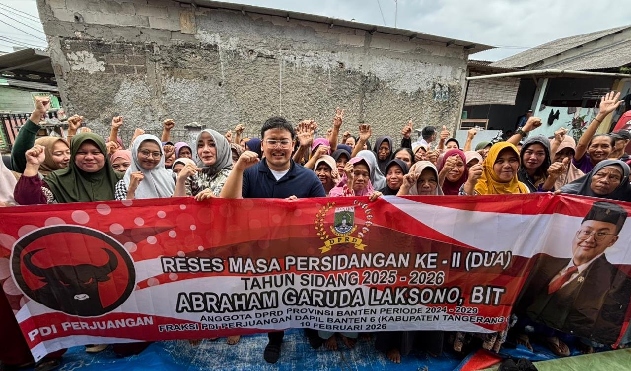 TANGERANG | TD — Pekarangan rumah di sebuah kampung di Kabupaten Tangerang siang itu dipenuhi kursi plastik dan obrolan hangat. Satu per satu warga menyampaikan cerita tentang pekerjaan, sekolah anak, hingga layanan kesehatan. Di tengah mereka, anggota DPRD Provinsi Banten dari Fraksi PDI Perjuangan, Abraham Garuda Laksono, duduk sejajar, membuka buku catatan kecil, dan mendengar.