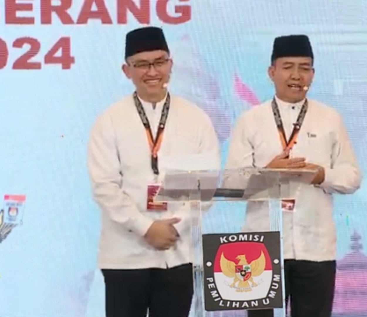 SERANG – Pasangan Calon (Paslon) Bupati dan calon Bupati Serang Andika Hazrumy-Nanang Supriatna berjanji akan melaksanakan Visi misi dan program kerjanya dengan sekuat tenaga agar bisa terwujud dan dirasakan langsung oleh masyarakat Kabupeten Serang khususnya. Demikian janji tersebut ditegaskan Paslon Andika-Nanang dihadapan para tamu undangan dan masa pendukung saat acara debat Calon Bupati dan Calon Wakil Bupati Serang yang dilaksanakan KPU disalah satu hotel di Kecamatan Cikande, Kabupaten Serang dan disiarkan langsung pada sejumlah stasiun televisi lokal dan kanal Youtube KPU Kabupaten Serang, Jumat (8/11/2024).