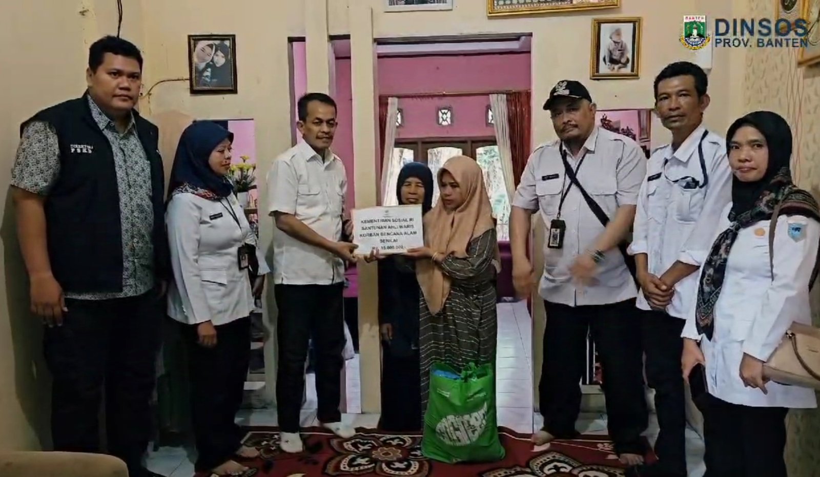 SERANG – Dinas Sosial (Dinsos) Provinsi Banten santuni keluarga korban tersambar petir di Kabupaten Pandeglang.
