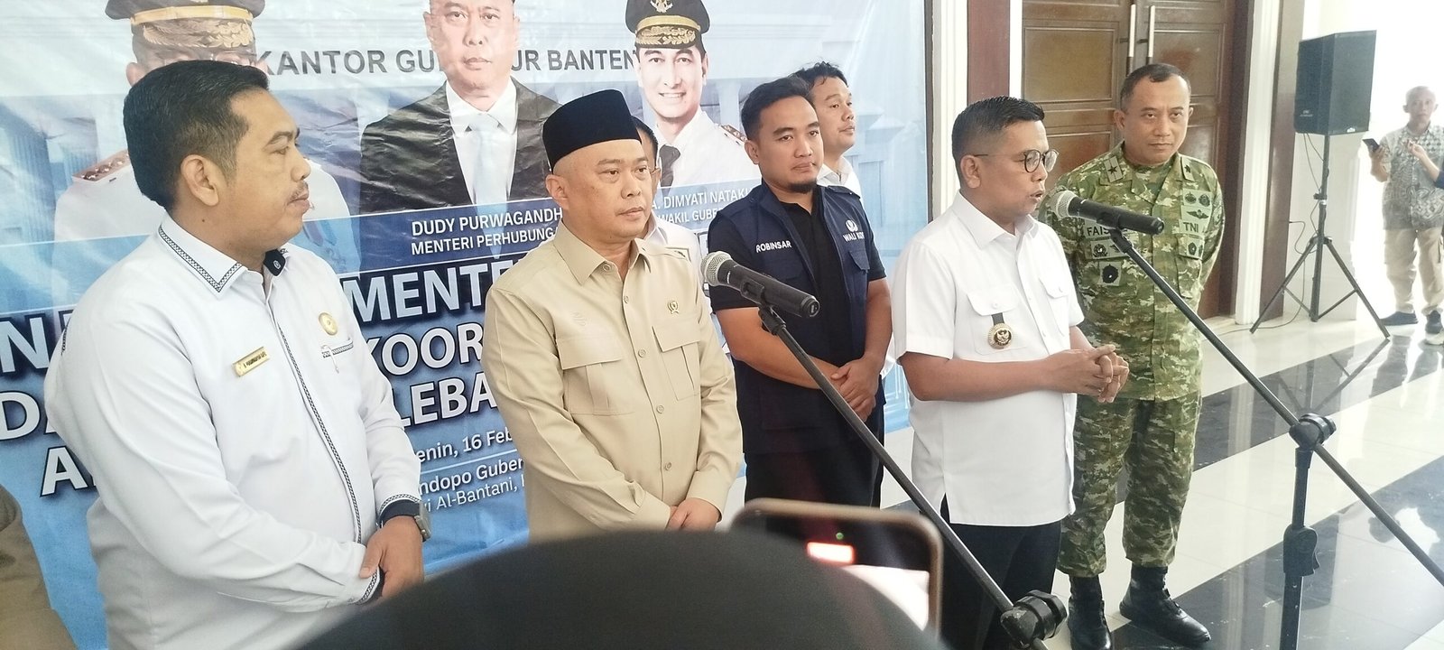 Hal tersebut disampaikan Dudy saat mengunjungi Provinsi Banten sekaligus memimpin Rapat Koordinasi Persiapan Angkutan Lebaran 2026 di Pendopo Gubernur Banten, KP3B, Kota Serang, Senin (16/2/2026).