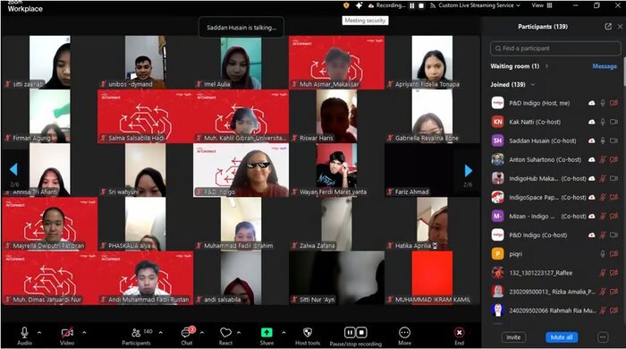 Dokumentasi Acara Webinar AI, Indigo (Telkom Indonesia)Indigo, program inkubasi dan akselerasi startup digital milik Telkom Indonesia, menyelenggarakan webinar bertajuk “AI for Business: Innovate, Automate, Dominate” di Makassar. Acara ini, bagian dari seri Indigo AIC, dihadiri oleh lebih dari 300 peserta yang terdiri dari mahasiswa, pengusaha startup, akademisi, dan pengembang AI. Tujuan utama webinar ini adalah untuk memberikan edukasi praktis mengenai penggunaan teknologi kecerdasan buatan (AI) dalam mengoptimalkan berbagai aspek bisnis.