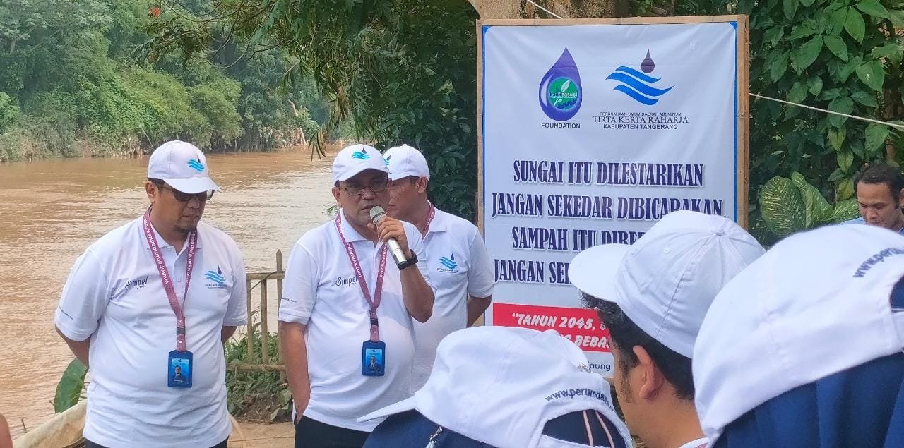 KABUPATEN TANGERANG | TD — Perusahaan Umum Daerah Air Minum Tirta Kerta Raharja (Perumdam TKR) terus menanamkan rasa cinta pegawainya kepada alam dan lingkungan, salah satunya sungai Cisadane.