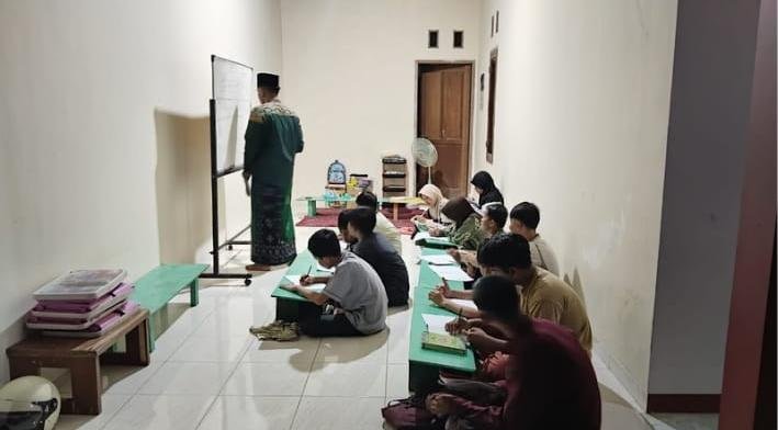 Seorang pengajar memberikan materi kepada para siswa dalam kegiatan belajar mengajar pendidikan keagamaan di ruang kelas sederhana. (Foto: Ist)