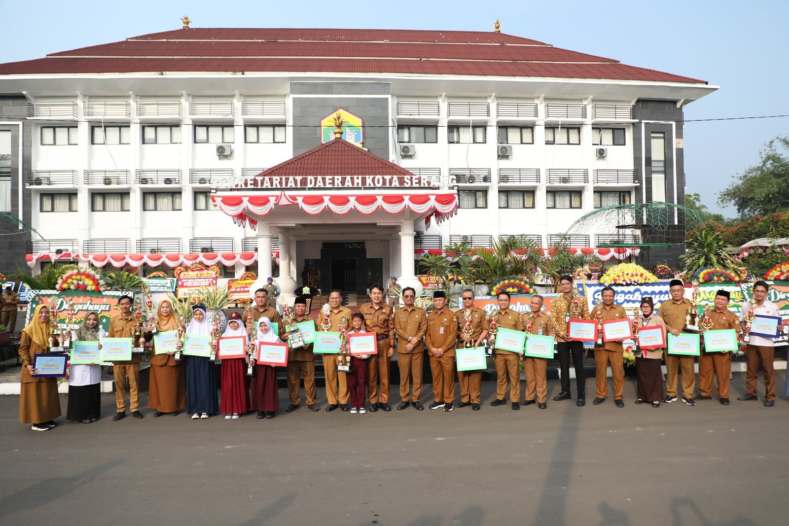 KOTA SERANG – Pemerintah Kota (Pemkot) Serang menggelar apel pagi yang dirangkai dengan kegiatan penyerahan penghargaan lomba Pawai Budaya, Lomba Vocal Group dalam Rangka HUT Ke-18 Kota Serang, Penghargaan Juara Seleksi Potensi Sumber Kesejahteraan Sosial (PSKS) Berprestasi Tingkat Kota Serang dan Provinsi Banten Tahun 2025 dan penyerahan Pengghargaan Juara Lomba Turnamen Mini Soccer KORPRI Kota Serang Cup Ke-1 Tahun 2025, Senin (11/8/2025).