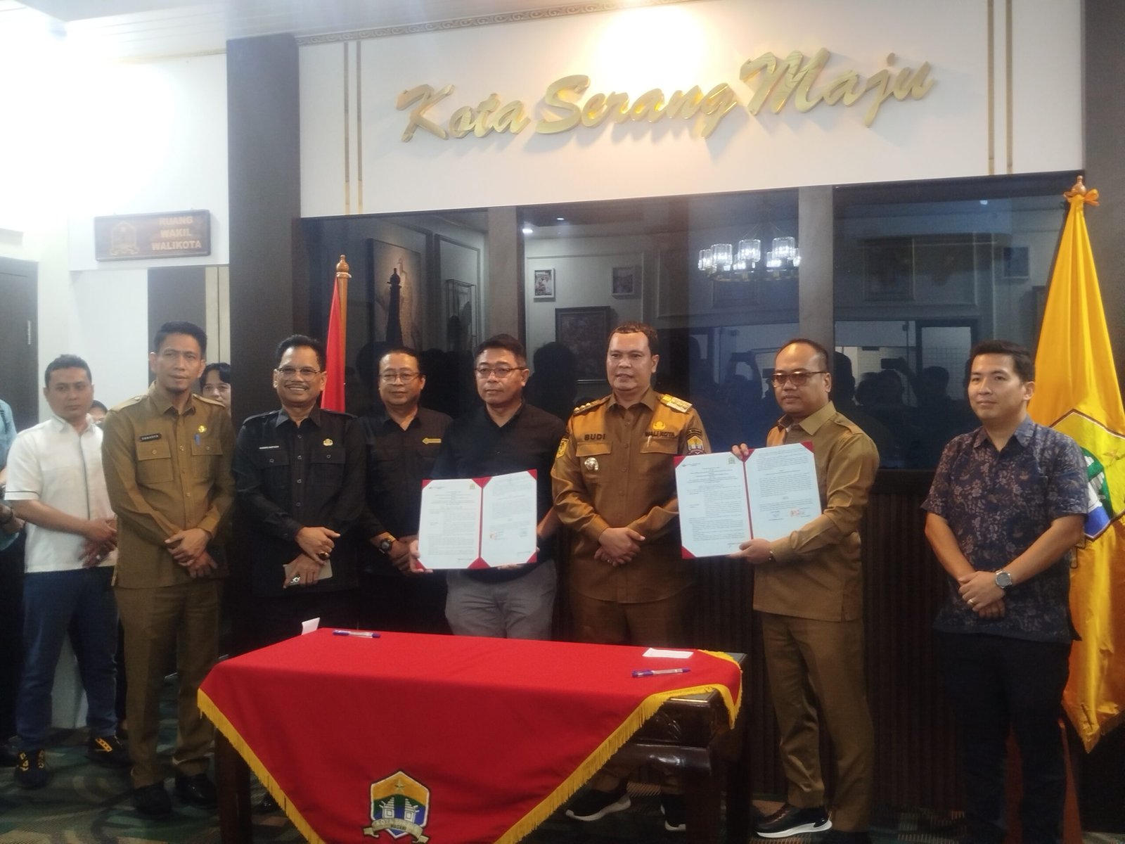 KOTA SERANG – Pemerintah Kota (Pemkot) Serang bersama PT Binangun Mitra Mandri menggelar teken Memorandum of Understanding (MoU) kerjasama pembangunan jalan Pakupatan-Bendung dengan cara betonisasi, Senin (16/6/2025).