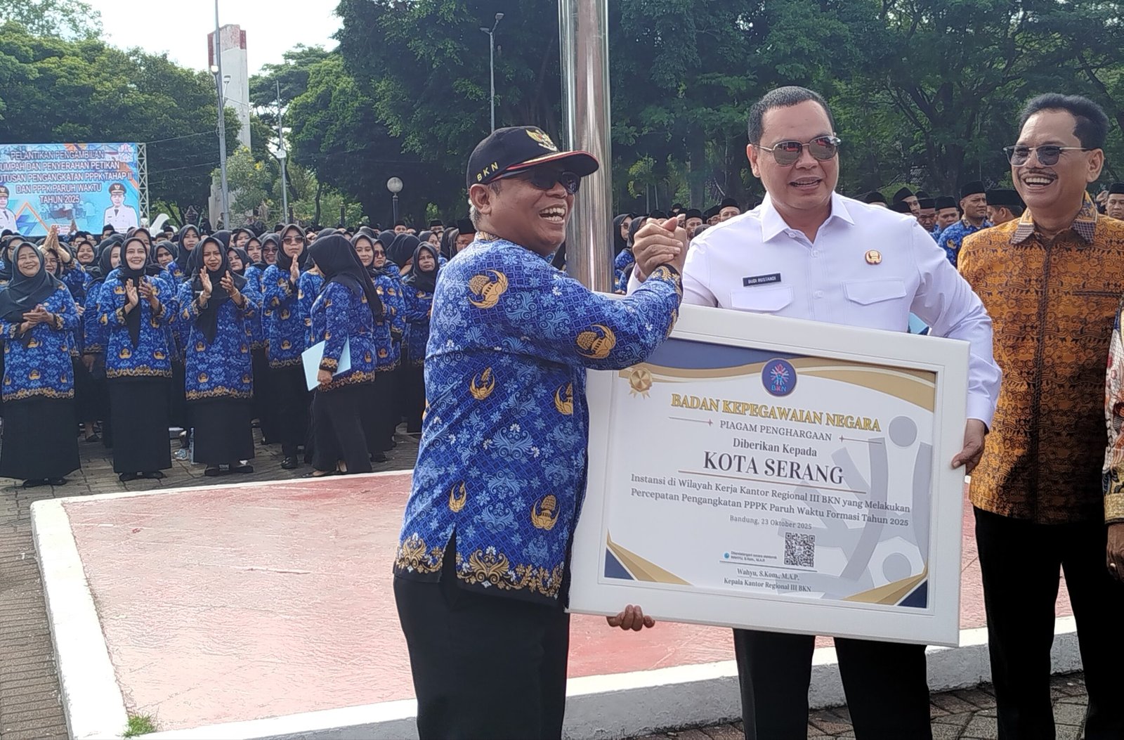 Penghargaan tersebut diserahkan langsung oleh Kepala BKN Regional III, Wahyu, kepada Wali Kota Serang, Budi Rustandi, pada acara pelantikan PPPK penuh waktu gelombang II dan paruh waktu yang digelar di Plataran Alun-alun Serang, Kamis (23/10/2025).
