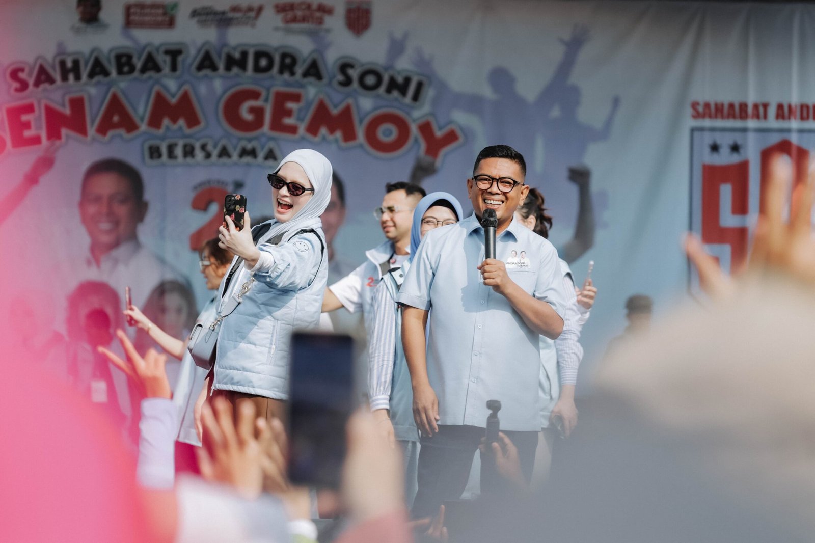 TANGERANG – Relawan Sahabat Andra Soni (SAS) menggelar senam gemoy bersama pasangan calon Gubernur dan Wakil Gubernur Banten nomor urut 02, Andra Soni-Dimyati Natakusumah di Lapangan Parkir CBD, Ciledug, Kota Tangerang, pada Sabtu, (19/10/2024) pagi.