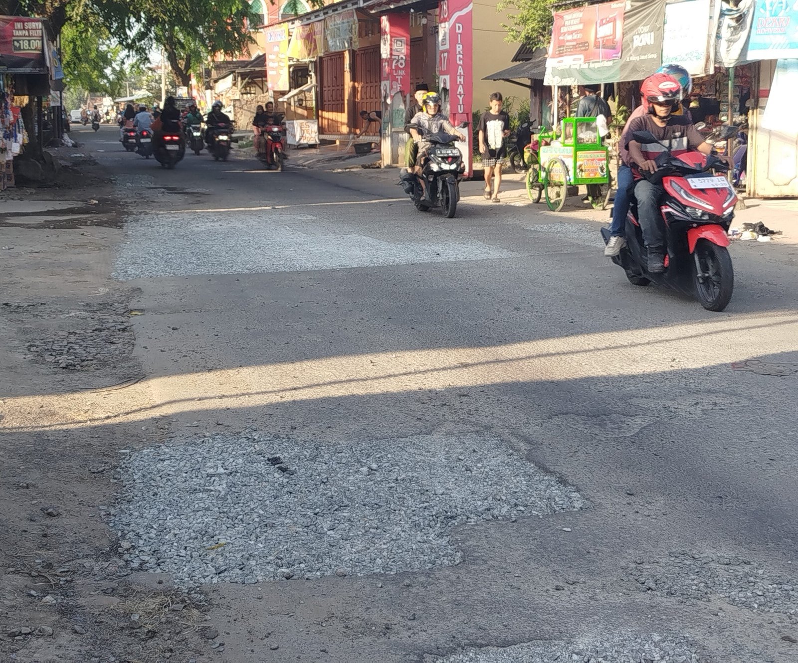 Salah seorang pengendara yang rutin melintasi ruas jalan itu setiap harinya, Riska mengatakan, kondisi tambalan lubang di jalan Warung Jaud sudah dilakukan sejak dua hari terakhir dengan dipasangi batu agregat, meski belum sampai pada tahap penyiraman aspal diatasnya.