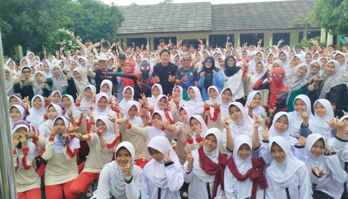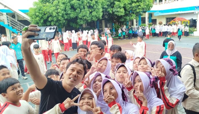 Kunjungan dimulai pukul 07.00 WIB. Dalam kondisi cuaca yang mendung dan diiringi gerimis, Agis justru datang membawa energi positif. Melihat ratusan siswa dan guru yang sudah menunggu, Agis spontan menyulut semangat mereka dengan sapaan ceria dan ajakan beraktivitas bersama.