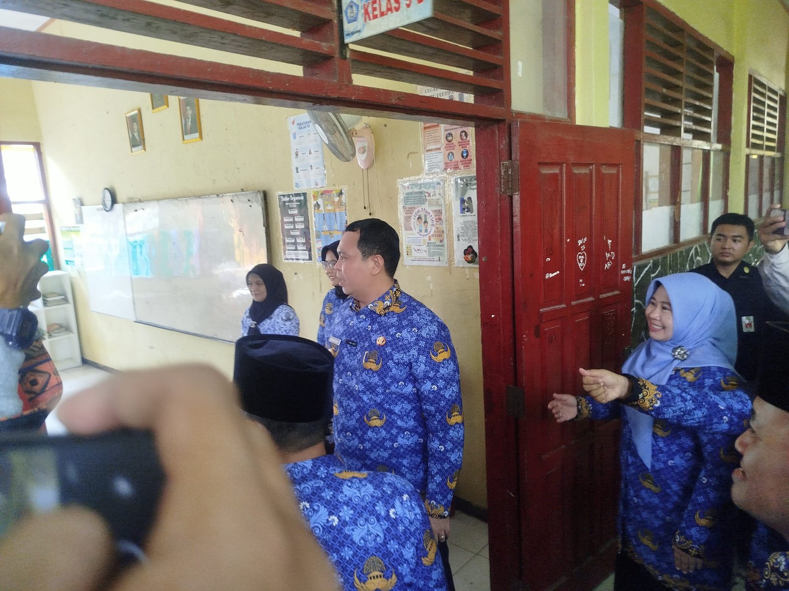 Selain mengecek sistem penerimaan siswa baru, Budi juga memeriksa kondisi ruang kelas, perabotan (mebeler), dan bangunan sekolah.